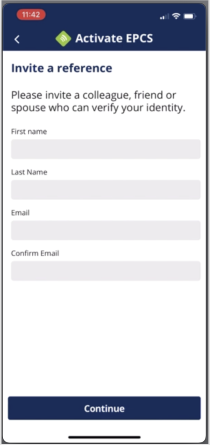 The reference will need to verify your identity as a prescriber who is authorized to prescribe controlled substances before you are able to electronically prescribe controlled substances.