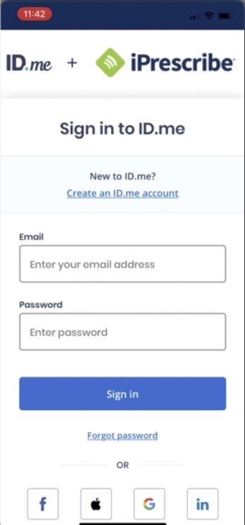 7. Next, the iPrescribe app will open your browser for you to sign into ID.me. Remember that you used ID.me when you went through identity proofing in Step 1: Register for iPrescribe.