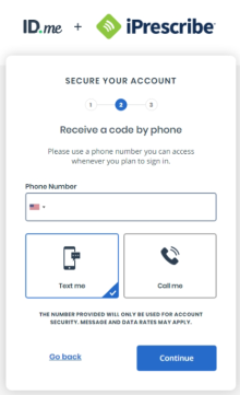 4. Next, choose a way for ID.me to secure your account when you sign into ID.me (e.g. phone call or text message).