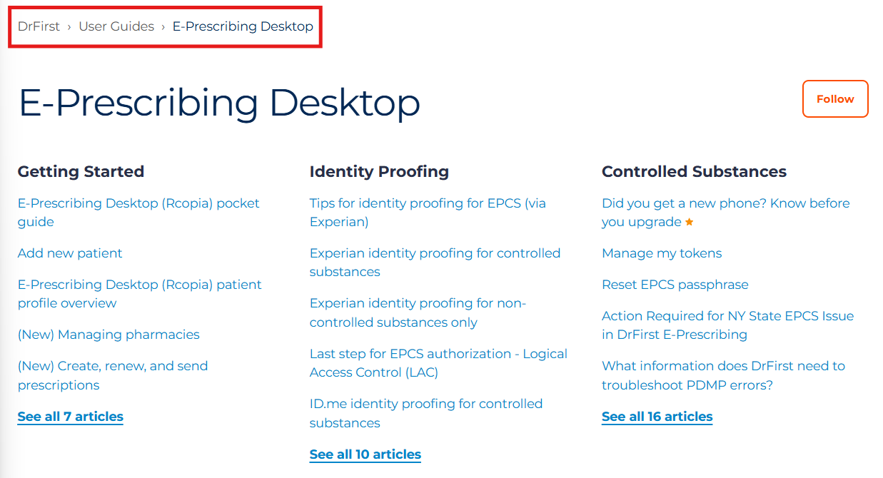 The DrFirst Help Center is organized to match how you work. Understanding this structure helps you navigate faster and find relevant content without getting lost.