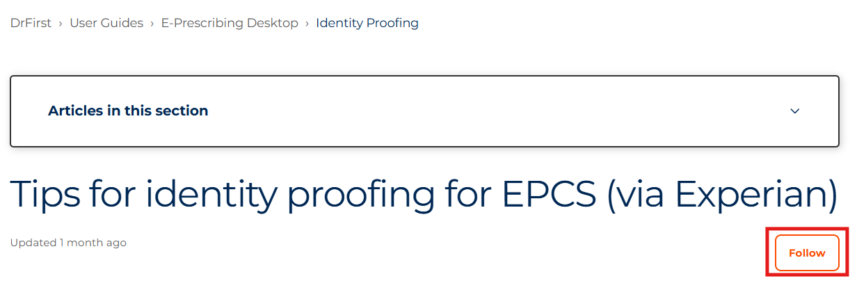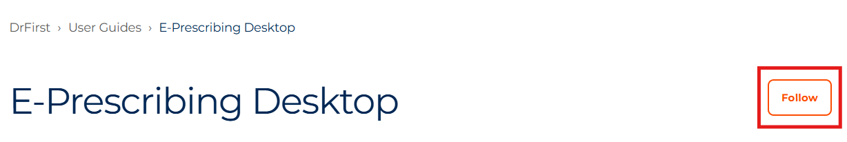The DrFirst Help Center has a built-in feature to follow sections or individual articles to receive notifications. This is especially valuable for staying current with new documentation, saving articles for later viewing, or product areas critical to your workflow.