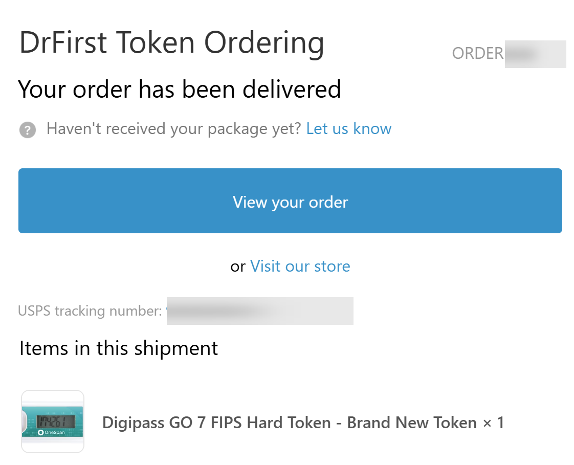 5. Once your token order has shipped, you will receive another email containing a tracking number.