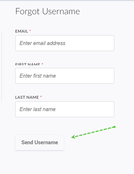 3. Enter your registered email address, first name, and last name. Select Send Username.