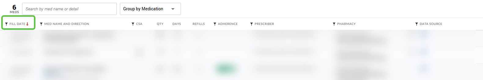 Grid tables in MedHx Companion may be sorted by single columns (default) or multiple columns.