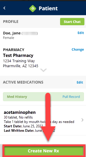 Tap the Create New Rx button at the bottom of their profile screen.