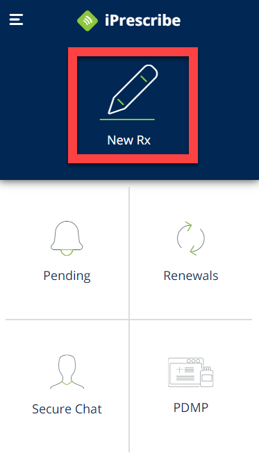 From your iPrescribe home screen, tap the New Rx (pencil) icon.