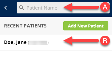 (B) Select a patient under the section labeled recent patients.