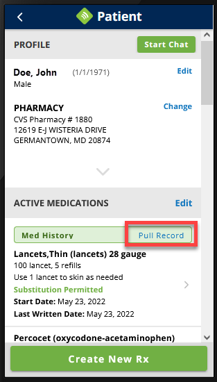- Click on the "Pull Record" action under Active Medications (see image #1 below)