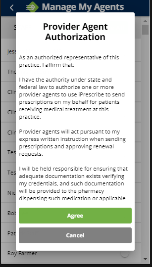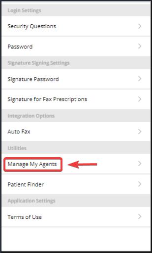 A Provider Agent is a staff user that a Provider has designated to transmit legend (not controlled) prescriptions on their behalf. These Provider Agents may send a prescription to the pharmacy, and the provider will receive a notice to sign the transmitted prescription. If you reside in the state of NY or GA, you cannot add a provider agent.