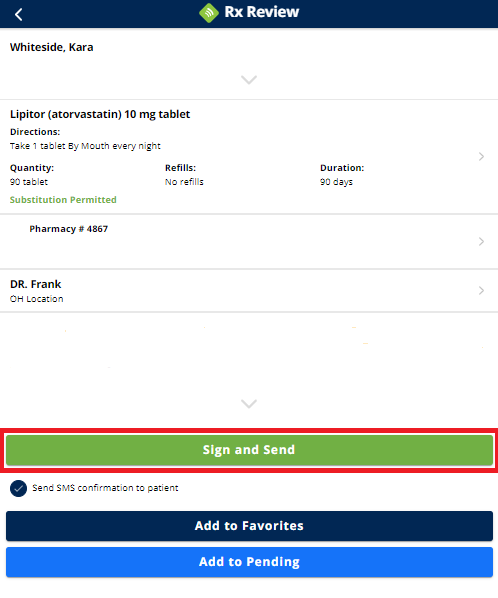 3. Enter and review prescription instructions as you would normally for a prescription.