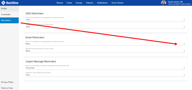 (B) Click the drop-down next to the field labeled Send me a reminder if a message has not been read and select Never.