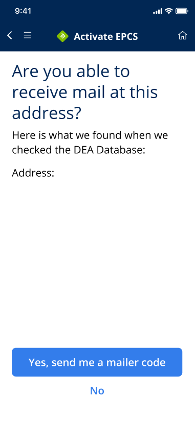 Get a Mailed Verification Code at Your DEA-listed Business Address